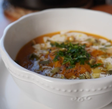Posoli, pobiberi i dodaj prstohvat muškatnog oraščića, na tanjir sipaj čorbu i pospi sitno seckanim peršunom.